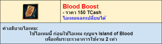 2. เมื่อใช้ไอเทม "Blood Boost" แล้วจึงค่อยกด “กุญแจ Island of Blood” จะเพิ่มเวลาเป็น 2 เท่า จาก 30 นาทีเป็น 1 ชั่วโมง