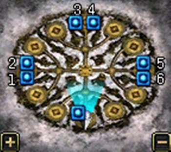 ตัวอย่างแผนที่ Island of Blood จะเห็นจุดเทเลพอร์ตที่ยังไม่ได้ใช้กุญแจ Soul
