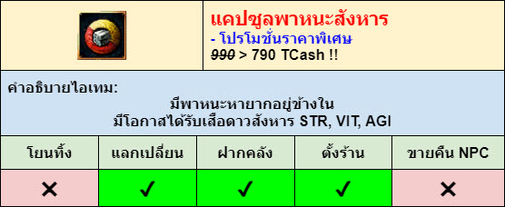 > ราคาพิเศษ: แคปซูลพาหนะสังหาร จากเดิม ̶9̶9̶0̶ TCash > 790 TCash