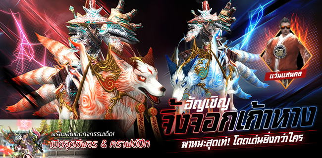 บอกเลยว่าโคตรเท่!! กับพาหนะใหม่สุดเจ๋ง “จิ้งจอกเก้าหาง” ที่จะเพิ่มความโดดเด่นให้กับเหล่าชาวยุทธ์ GODLIKE TwelveSky2 ที่อัปเดตเพิ่มเข้ามาให้เลือกใช้กันถึง 2 แบบ ได้แก่ “จิ้งจอกเก้าหางเพลิง” กับ “จิ้งจอกเก้าหางวารี” โดยมาพร้อมสเตตัสพิเศษที่แตกต่างกัน ซึ่งสามารถเปิดลุ้นหาได้จากไอเทมมอลใหม่ “หยกเก้าหาง(PP)” ที่วางจำหน่ายในร้านค้า Item Shop แล้ววันนี้!!