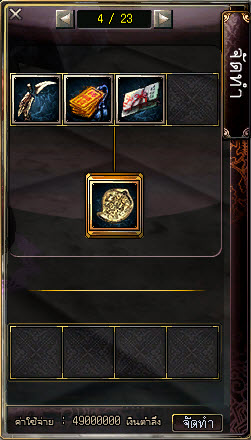 - นำไอเทมวัถุดิบที่เตรียมมา วางในช่องให้ครบ [ต้องเรียงไอเทมให้ตรงตามตาราง] แล้วกดปุ่ม “จัดทำ”
