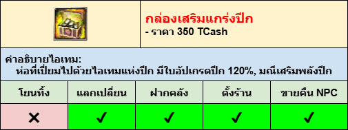 - อัปเดตไอเทมมอล: กล่องเสริมแกร่งปีก