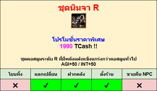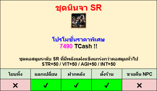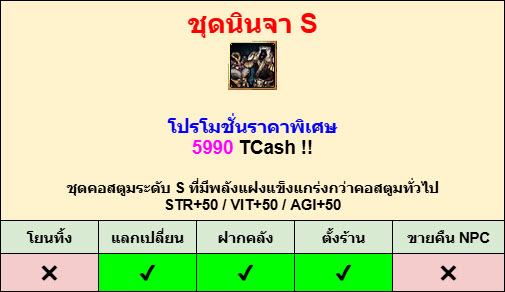 - อัปเดตไอเทมมอล: ชุดนินจา (SR/R/S)