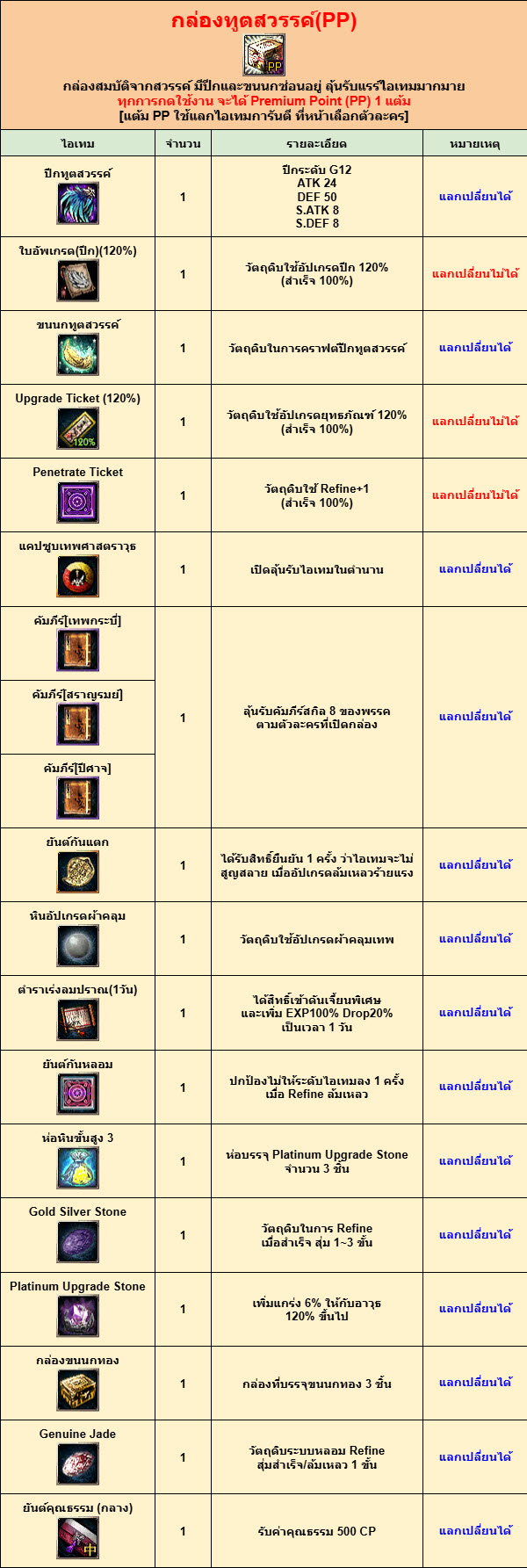 โดยคะแนน Premium Point ในรอบนี้ จะได้รับจากการเปิด Item Mall อย่าง “กล่องทูตสวรรค์(PP)” ซึ่งจะได้รับคะแนน Premium Point 1 คะแนน ไว้สะสมแลกไอเทมการันตีสุดแรร์มากมาย