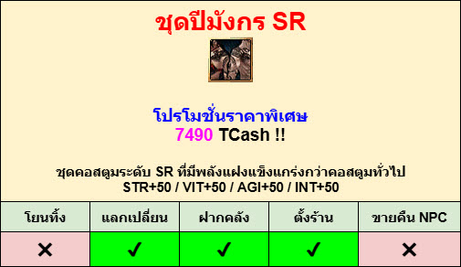 - ถอดไอเทมมอล: ชุดกี่เพ้า (SR/R/S)