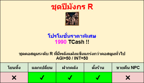 ข้อมูลเพิ่มเติม ไอเทมร้านพรีเมียม