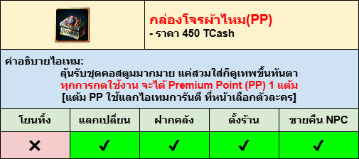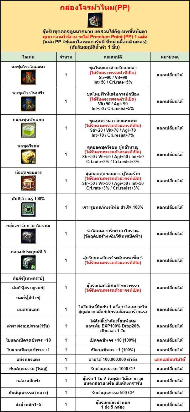 - อัปเดตไอเทมมอล: กล่องโจรผ้าไหม(PP)