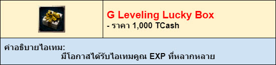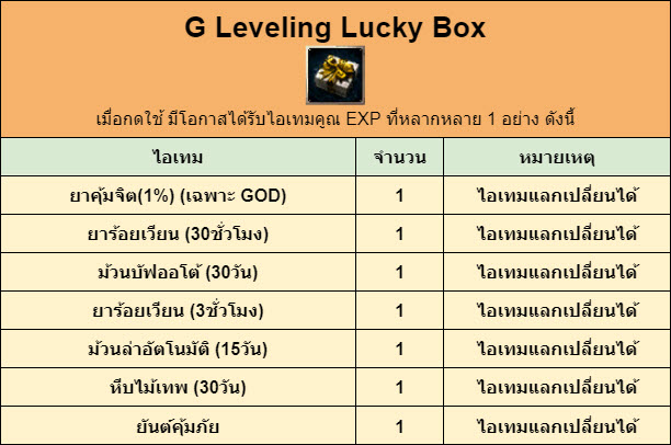 รายละเอียดภายในกล่อง G Leveling Lucky Box