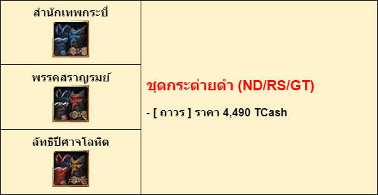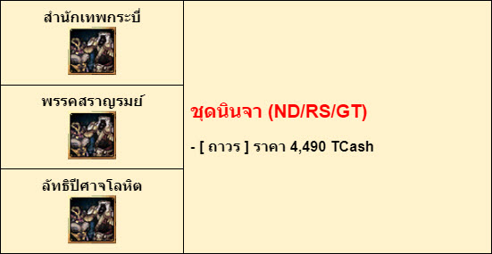 - อัปเดตคอสตูม: ชุดนินจา (ND/RS/GT) (ถาวร)